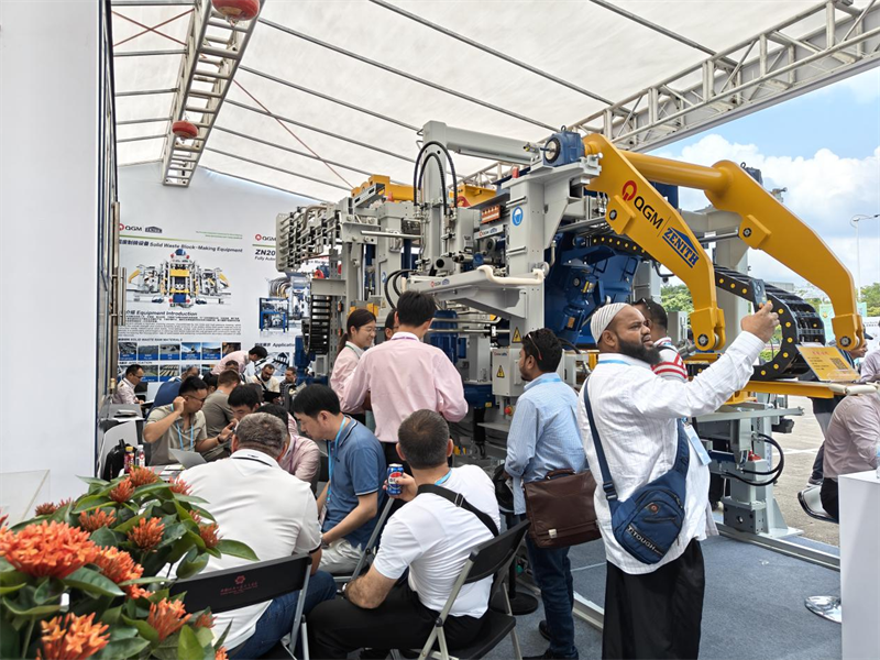 Under Canton Fair höll QGM en dubbel utställning vid monter 12.0 C21-24 utomhus och 20.1 K11 inomhus. Företaget lyfte fram sin ZN1000-2C helautomatiska tegeltillverkningsmaskin, en representativ avancerad betongblocksformningsmaskin. Genom att integrera avancerad kinesisk och tysk teknologi, har denna maskin enastående fördelar som hög effektivitet, hög precision, låg energiförbrukning och intelligent teknologi, vilket till fullo visar QGM:s ledande position inom intelligent tillverkning och utrustning för gröna byggmaterial.