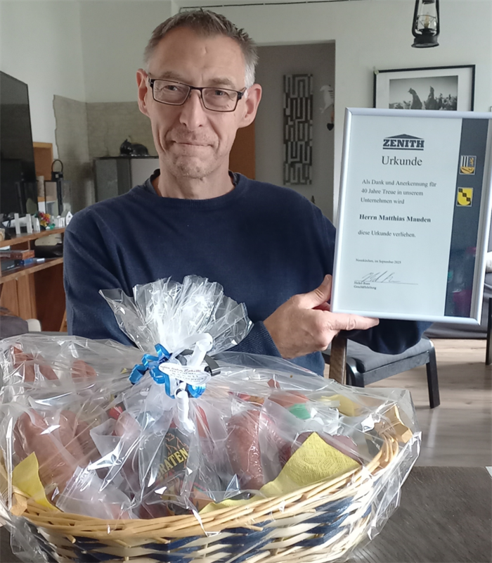 Herr Markus T ü rk, som är 47 år gammal, firar också sitt 30-årsjubileum. Han avslutade en treårig industritjänstemansutbildning på Zenit och fungerar för närvarande som chef för reservdelsförsäljningsavdelningen. Under många år har han tillhandahållit effektivt eftermarknadsstöd till globala kunder med gedigen affärskompetens och ansvarskänsla, vilket säkerställer en högkvalitativ drift av företagets servicesystem.