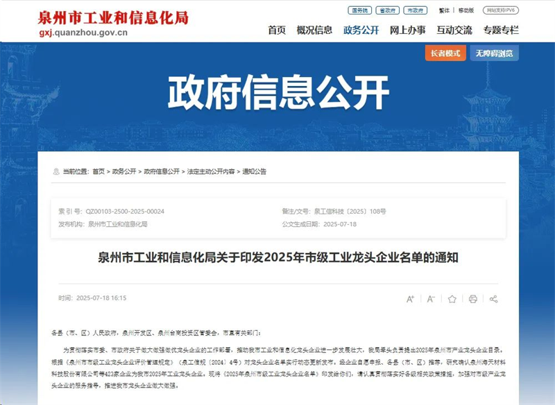 Nyligen släppte Quanzhou Municipal Bureau of Industry and Information Technology officiellt "2025 Quanzhou Municipal Industrial Leading Enterprise List." Fujian QGM Co., Ltd., som utnyttjar sitt omfattande ledarskap inom forskning och utveckling av intelligent utrustning, grön tillverkning och global marknadsexpansion, valdes ut bland de 423 ledande industriföretagen på kommunal nivå.
